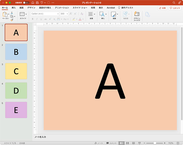 サンプルとして、Cのスライドだ毛を他のスライドの2倍の表示時間としたい場合・・・